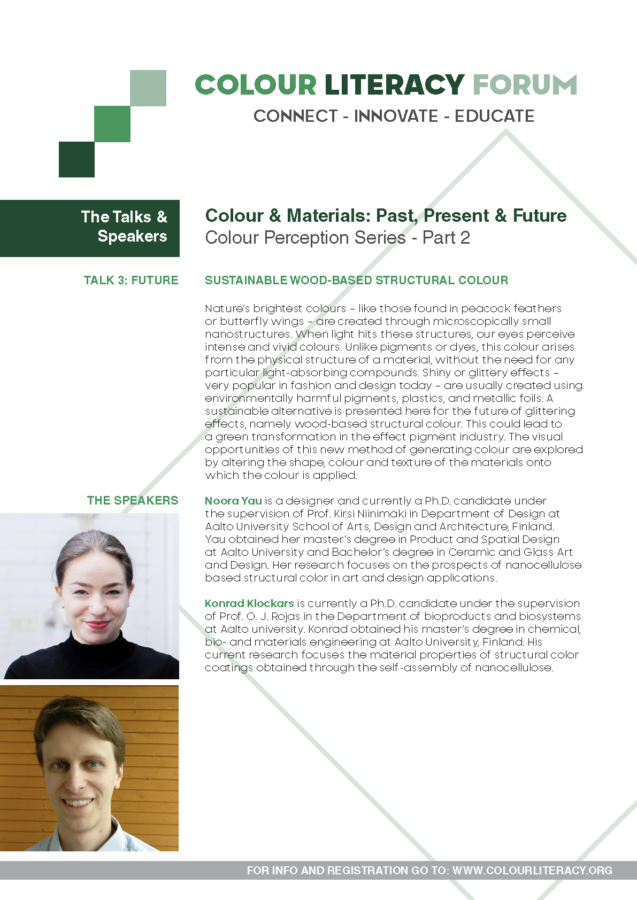 Tieteiden yössä on ohjelmaa A:sta Ö:hön! Suomen väriyhdistyksen tapahtuman aiheena on värit ja sanat. Värit ovat kaikkialla läsnä arkisissa havainnoissamme ja esteettisissä elämyksissämme, mutta miten puhua niistä? Tule Tieteiden talolle kuuntelemaan ja keskustelemaan väreistä ja sanoista torstaina 12.1. klo 21.15–22.15 osoitteessa Tieteiden talo, sali 104, Kirkkokatu 6, 00170 Helsinki. Lue lisää tästä. Tutustu Tieteiden yön muuhun ohjelmaan sivustolla tieteidenyo.fi.