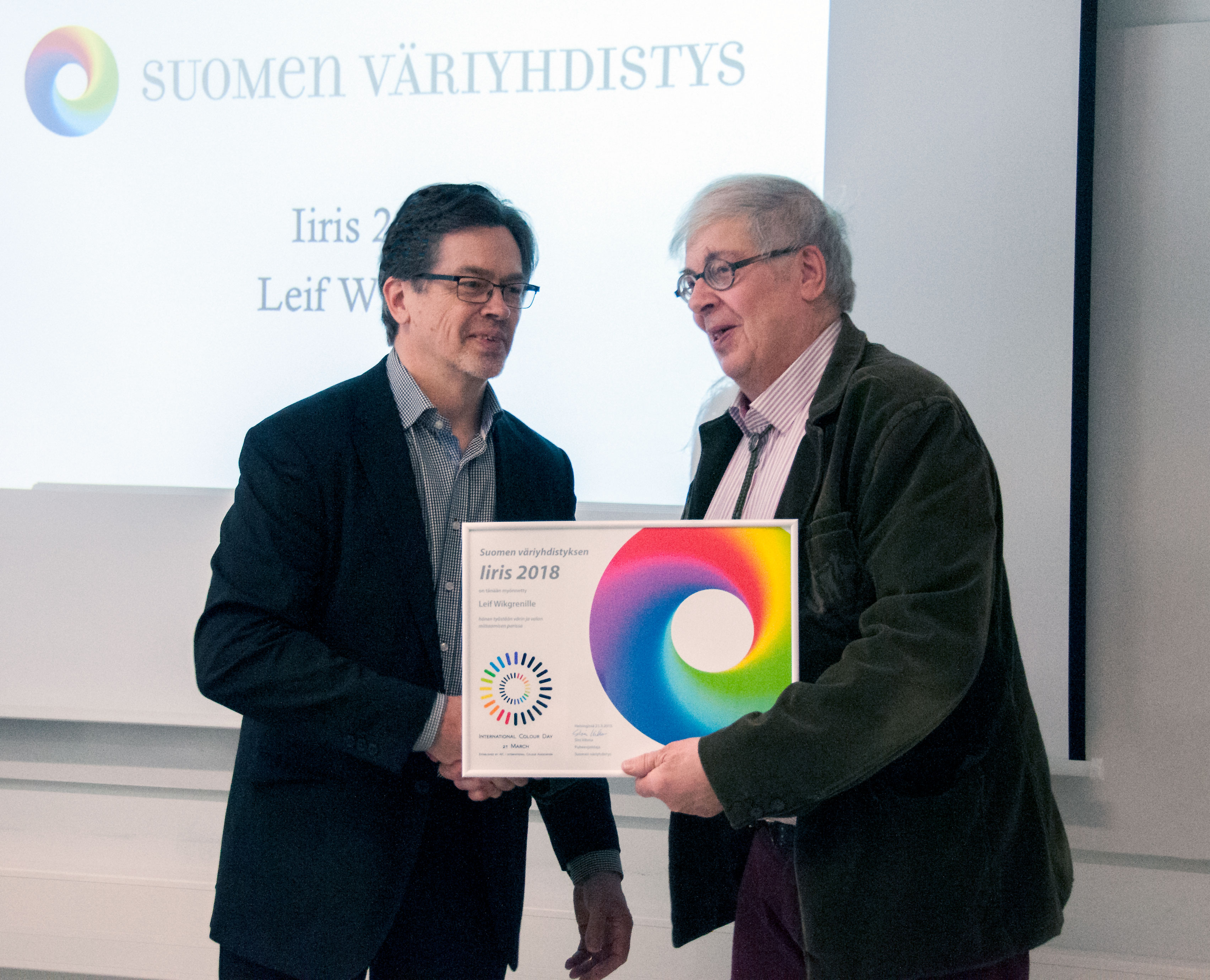 The Finnish Colour Association’s Iiris 2018 was awarded to Leif Wikgren, Sales Manager at Oy Mitaten Finland Ab, for his long career in the measurement of colour and light. Colour and light have meant much more than just an employment for Leif Wikgren. During his long career he has transferred knowledge about colorimetry, photometry and measurement of surface quality to countless clients, students and professionals in Finland and the Nordic countries. Leif Wikgren worked first for some ten years under various companies in the photography business until in 1994 he founded together with Peter Korhonen Oy Mitaten Finland Ab. Leif Wikgren’s expertise has been called upon in many ways. He is a founding member of Suomen väriyhdistys, The Finnish Colour Association, and was instrumental in creating a modern colorimetric definition for the colours of the Finnish national flag. In recent years Leif Wikgren has devoted himself to disseminating information about the interaction of colour and illumination.