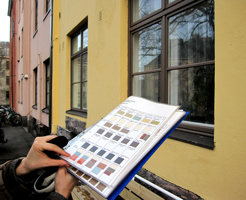 The award was given for their unique collaboration on reviving and saving for posterity the colour research of building conservator Thorvald Lindqvist. In the 1980s Lindqvist charted and collated facade colours of houses in Helsinki, representing building styles and periods from the Empire classical era to the 1960s. Lindqvist’s work was stored on the shelves of the Building Supervision Office as colour samples and notations in dozens of binders that were all but forgotten for three decades.