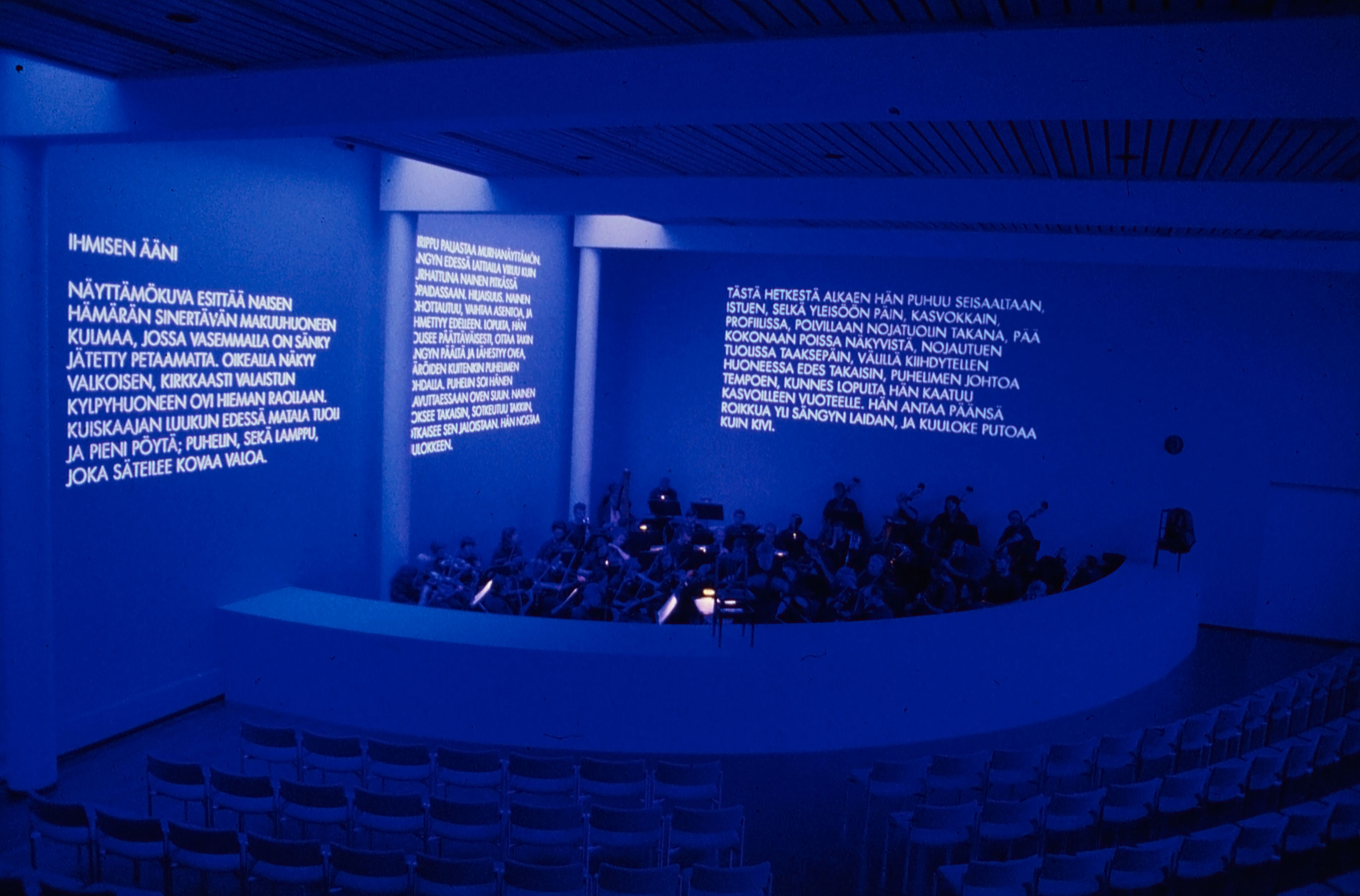 Chamber opera “La Voix Humaine”, Savonlinna Opera Festival, 1993. Kaisa Hannula, soprano; Markus Lehtinen, conductor; Vilppu Kiljunen, director; Markku Uimonen, visual designer. Photo: Markku Uimonen.