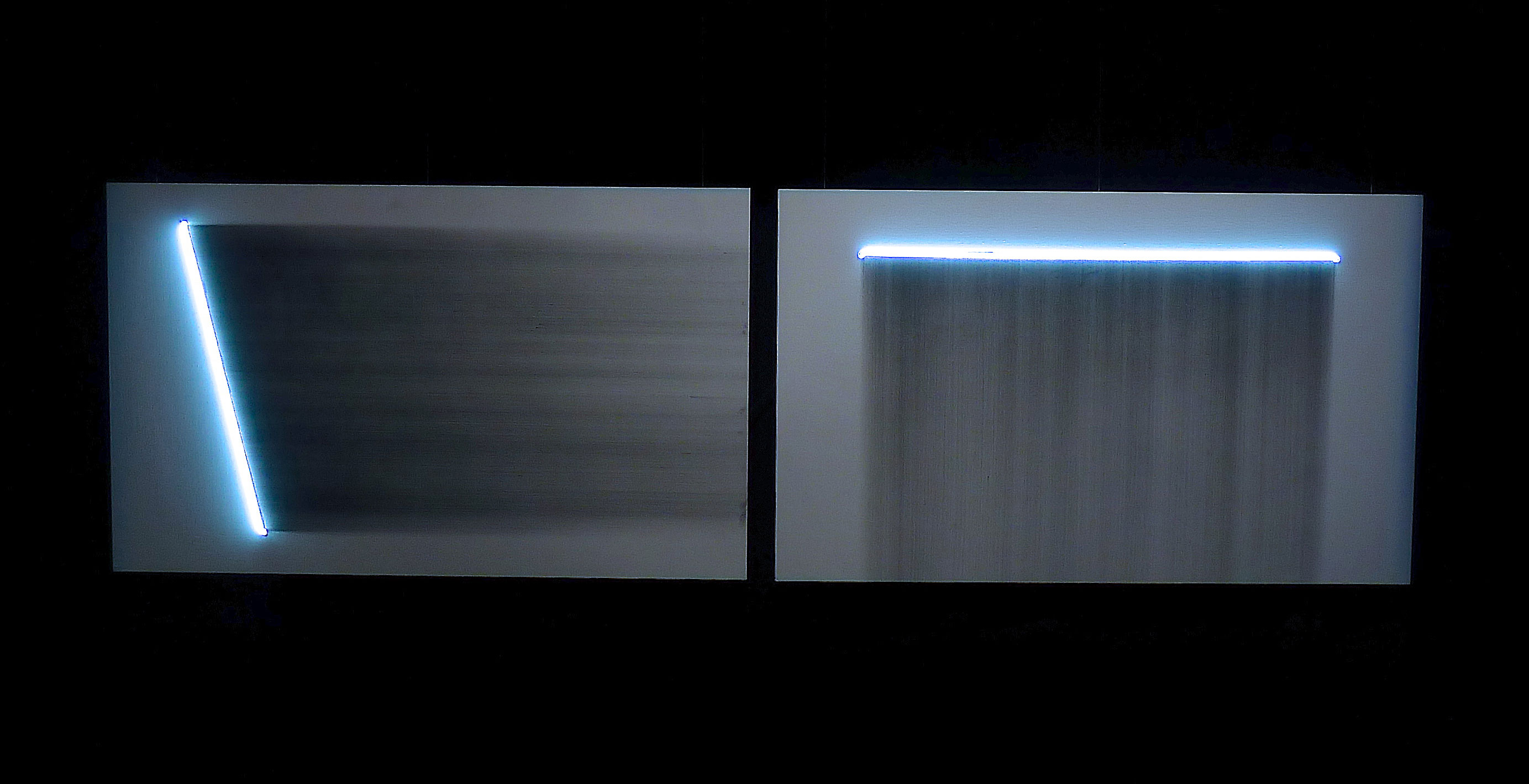 “4000V-Shadow of Light”. Acrylic, charcoal and neon light on canvas, 2014. Re-production of work exhibited at the Retretti Art Centre, 1995. Photo: Markku Uimonen.