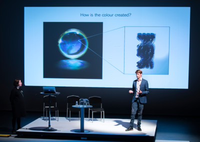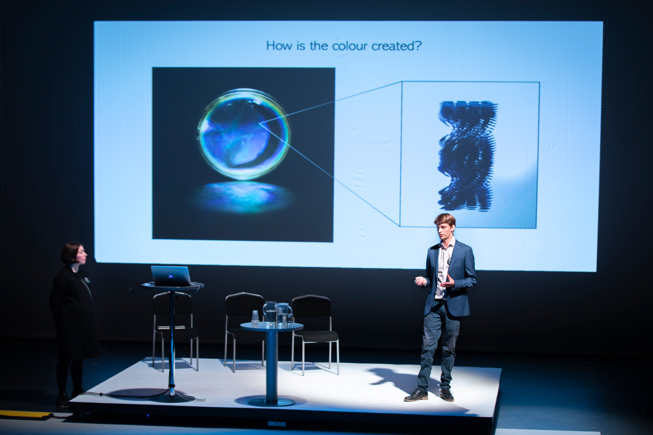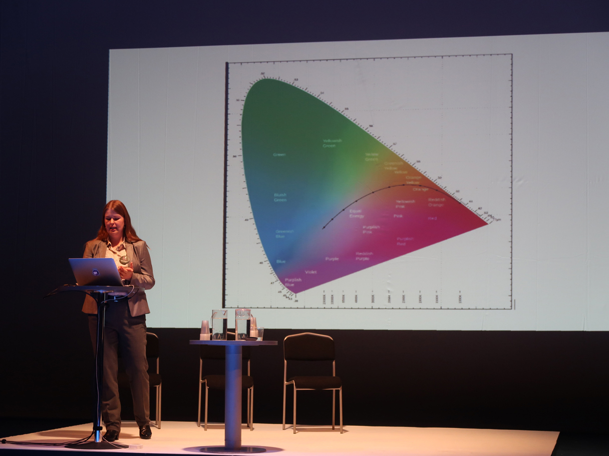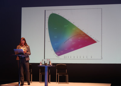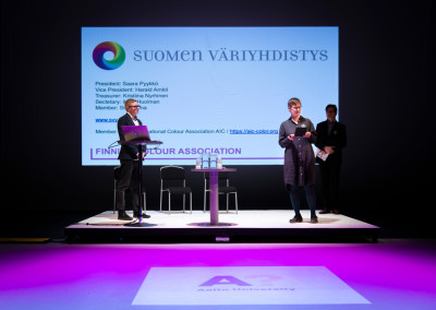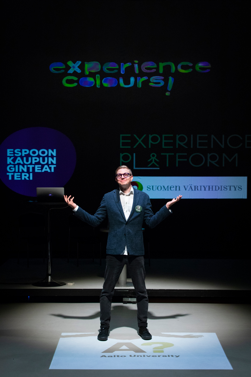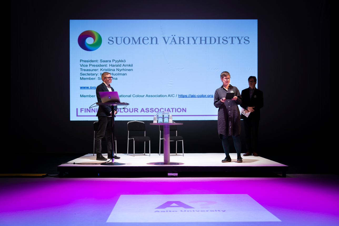 The event Experience Colours!, a collaborative effort of the Aalto University’s Experience Platform, The Finnish Colour Association and the Aalto Colour Research Group, attracted an audience of 250 people to the Espoo City Theatre, the venue of this afternoon-long event on 7 November 2018. The topics of the presentations included the role of memory in colour constancy, the planning of colours in new residential areas, new nanomaterials for producing structural colours, the effects of light and colour on health, The NCS as an aid in colour education and research, fashion and colours in Early Modern Europe, colour trends of Chanel lipsticks and the history of the Coca-Cola red brand colour. Keynote speaker Richard Misek gave a talk, with film excepts, about colour in cinema from very early days of the art form to the present. The afternoon was rounded off by a get-together with refreshments in the theatre foyer, where the audience could also enjoy an exhibition of colourful dresses by Aalto University’s fashion and theatre costume design students. What a great event to brighten up the darkest time of the year!